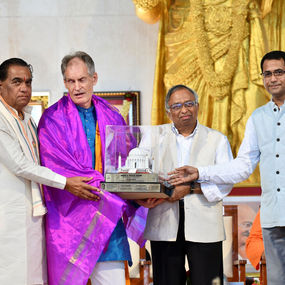 He started his speech in English and then stated an Indian proverb which was that 'in this dome when I speak my speech comes back'. He wished to convey that we cannot describe in words the destination of Humanity. Even 70 years after our independence we can’t find Gandhi’s Ramrajya, but he did find it today in the dome. He says his western education separates science, religion and philosophy. to see them together we must again think eastern. Don’t divide the 3 things as only together can one achieve peace. He then stated that ‘Aham Brahma asmi’ is the belongingness which in itself is the Advaita. It is misunderstood. Basically Brahman does not belong to you, but you belong to Brahman.